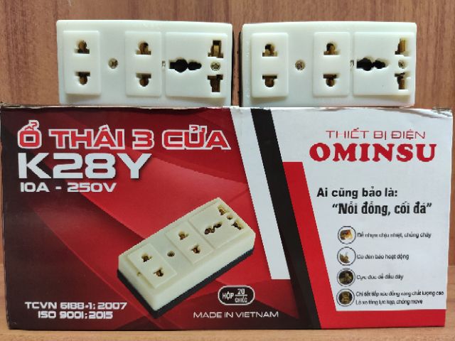 Nhà cửa & Đời sống > Dụng cụ & Thiết bị tiện ích > Dụng cụ > Khác || Ổ cắm 3 chân OMINSU K28Y tích hợp lỗ cắm 3 chấu siêu bền - Hàng Việt Nam chất lượng caoCòn hàng