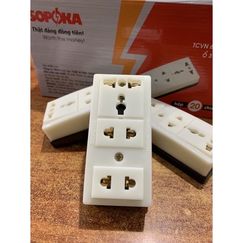 Thiết Bị Điện Gia Dụng > Mạch điện & Phụ tùng > Ổ cắm điện & Dây nối || Ổ cắm 3 cửa Sopoka T32, 3 gates socketCòn hàng