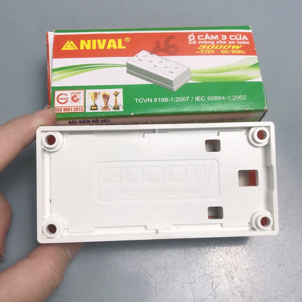 Ổ cắm 3 lỗ Nival chịu tải cao 3000W bảo hành 12 tháng
