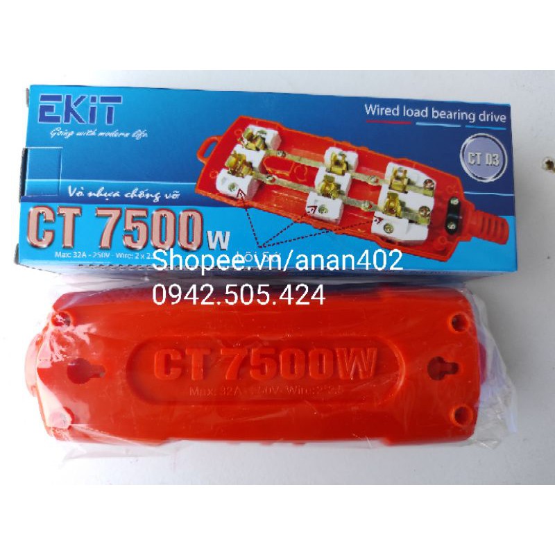 Giới thiệu Ổ cắm 3 lỗ EKIT - ổ đấu dây siêu chịu tải CT 7500W