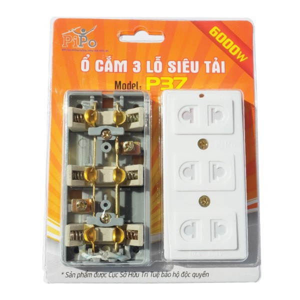 Ổ cắm 3 lỗ P37 của thiết bị điện PIPO tự hào đáp ứng được các tiêu chí trên với những tính năng nổi bật - được thiết kế với công nghệ cao, chất lượng tốt. Có 6 lò xo bung trực diện, đảm bảo độ đàn hồi của chấu. Đặc biệt có tiếp điểm tốt – giúp bảo toàn tối đa điện năng của dòng điện, đồng thời giúp các thiết bị điện bảo toàn hiệu suất làm việc, tăng lợi ích và tiết kiệm cho người sử dụng. Vỏ bọc được làm từ nhựa ABS, do đó có khả năng chịu nhiệt cao, chống được các va đập tốt.