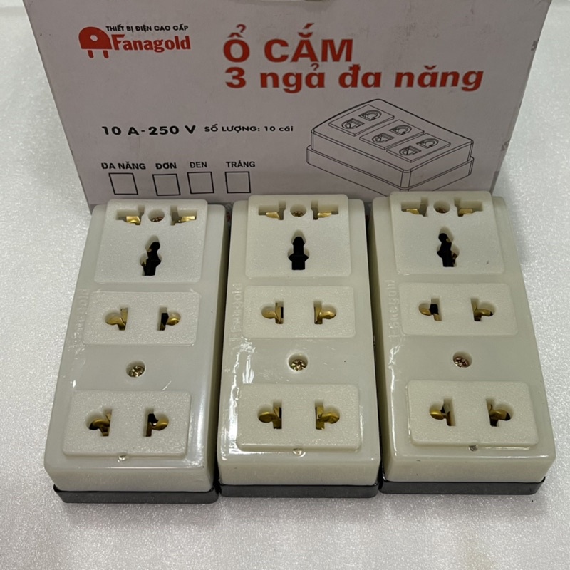 ✅ Ổ CẮM 3 NGẢ ĐA NĂNG 10A - 250V. Thiết bị điện cao cấp Fanagold