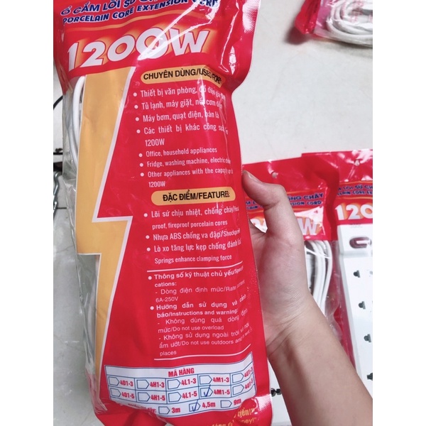 Thiết Bị Điện Gia Dụng > Mạch điện & Phụ tùng > Ổ cắm điện & Dây nối || Ổ cắm 4 lỗ 1200W Sopoka dây dài 4,5m có công tắc bấm kiêm đèn báoCòn hàng