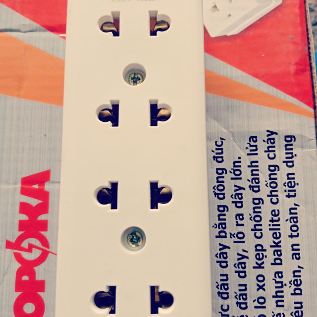 Ổ cấm 4 lổ 2200w SOPOKA siêu chịu tải. Chất liệu bằng nhựa chống cháy. Có lò xo kẹp chống đánh lửa. Cực đấu dây bằng đồng đúc, lổ ra dây lớn, dễ đấu dây.¤ Kiểu dáng đơn giản, nhỏ gọn, tiết kiệm không gian lắp đặt, kết cấu bền chắc, dễ sử dụng và độ bền cao.