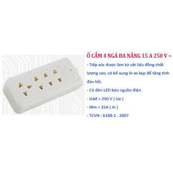 Ổ cắm 4 ngả đa năng 15A/250V có đèn báo