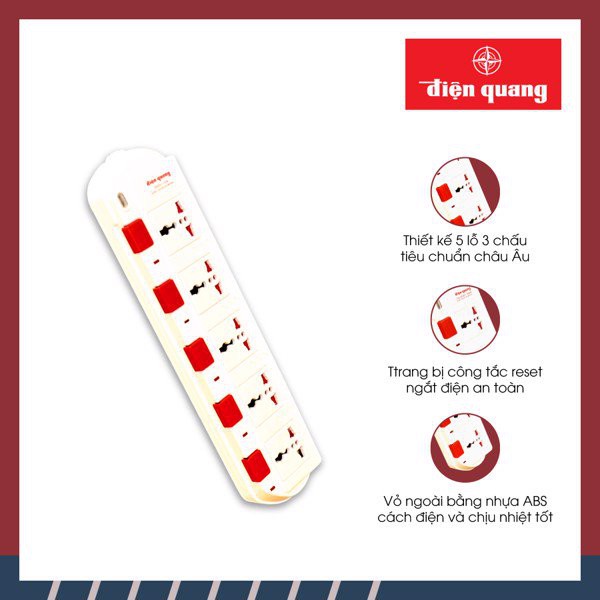 Ổ Cắm 5 Lỗ 3 Chấu Dây 2 Mét Điện Quang ĐQ ESK 2W. SM750SLVỏ ngoài làm bằng nhựa ABS chịu nhiệt cao và chống rò rỉ.