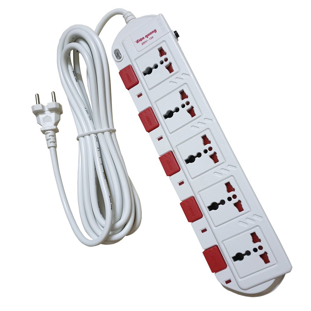 Thiết Bị Điện Gia Dụng > Mạch điện & Phụ tùng > Ổ cắm điện & Dây nối || Ổ Cắm 5 Lỗ 3 Chấu Dây 5 Mét Điện Quang ĐQ ESK 5W.SM750SL - Trắng ĐỏCòn hàng