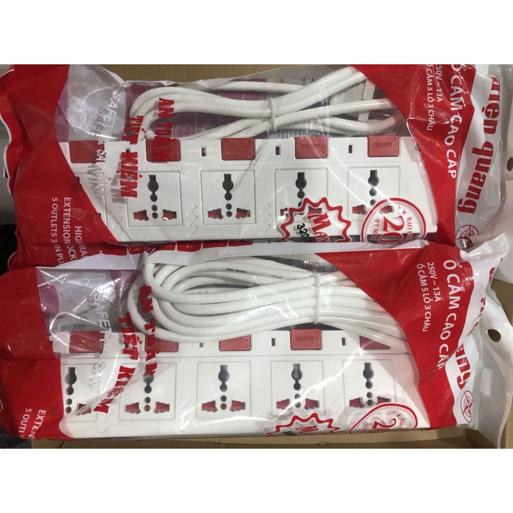 Thiết Bị Điện Gia Dụng > Mạch điện & Phụ tùng > Ổ cắm điện & Dây nối || Ổ cắm 5 lỗ 3 chấu dây 5m Điện Quang ĐQ ESK 5W.SM750SLCòn hàng