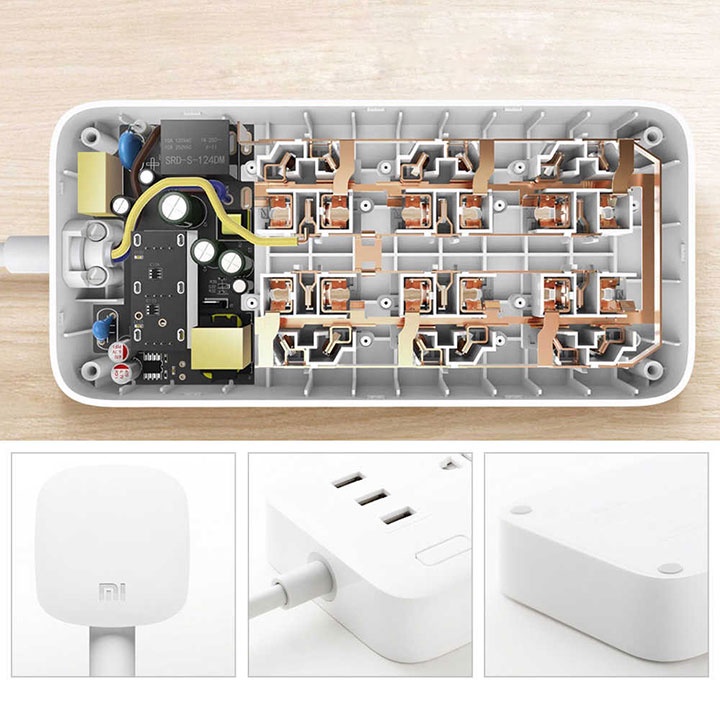Bên cạnh đó, giống như hầu hết những sản phẩm ổ cắm từ trước đến nay của Xiaomi, Ổ cắm 6 cổng Xiaomi power strip CXB6-1QM 6 đầu tích hợp 3 USB cũng được trang bị đầy đủ những tính năng an toàn tự động, để bảo vệ thiết bị và cả người dùng trong quá trình sử dụng. Có thể kể qua như bảo vệ ngắn mạch, bảo vệ quá áp, quá dòng, quá nhiệt trong quá trình sử dụng.