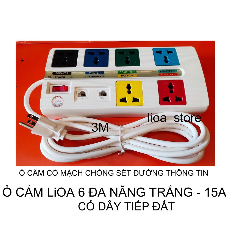 Thiết Bị Điện Gia Dụng > Mạch điện & Phụ tùng > Ổ cắm điện & Dây nối || Ổ CẮM 6 ĐA NĂNG CHỐNG SÉT ĐƯỜNG THÔNG TIN CÓ DÂY TIẾP ĐẤT .Còn hàng