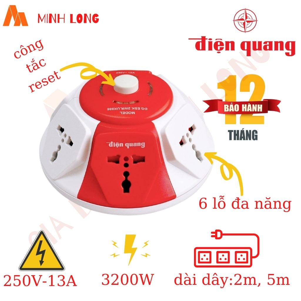 Giới thiệu Ổ cắm 6 lỗ chịu tải - Ổ điện văn phòng Điện Quang ĐQ ESK UK986 ( Kiểu UFO 6 lỗ 3 chấu màu Trắng Đỏ )