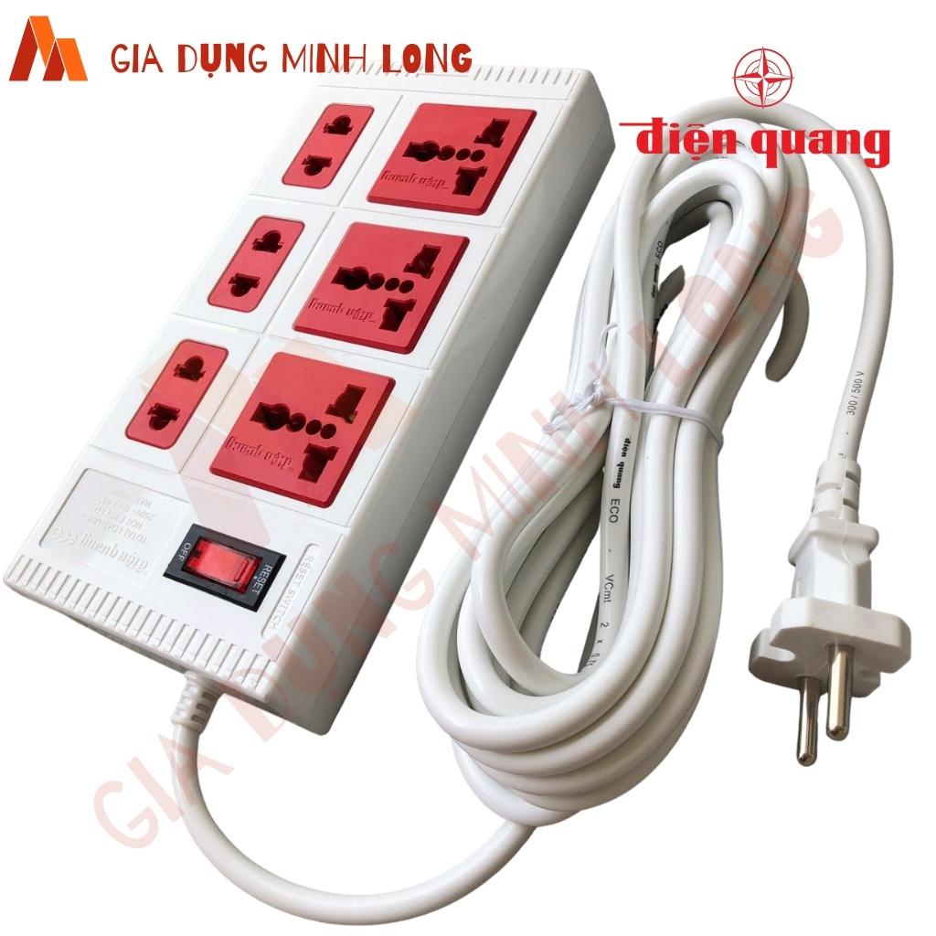 Giới thiệu Ổ cắm 6 lỗ đa năng chịu tải Điện Quang ECO ĐQ ESK 6ECO - Ổ cắm liền dây 2 mét, 5 mét chịu tải 2 màu đen; trắng