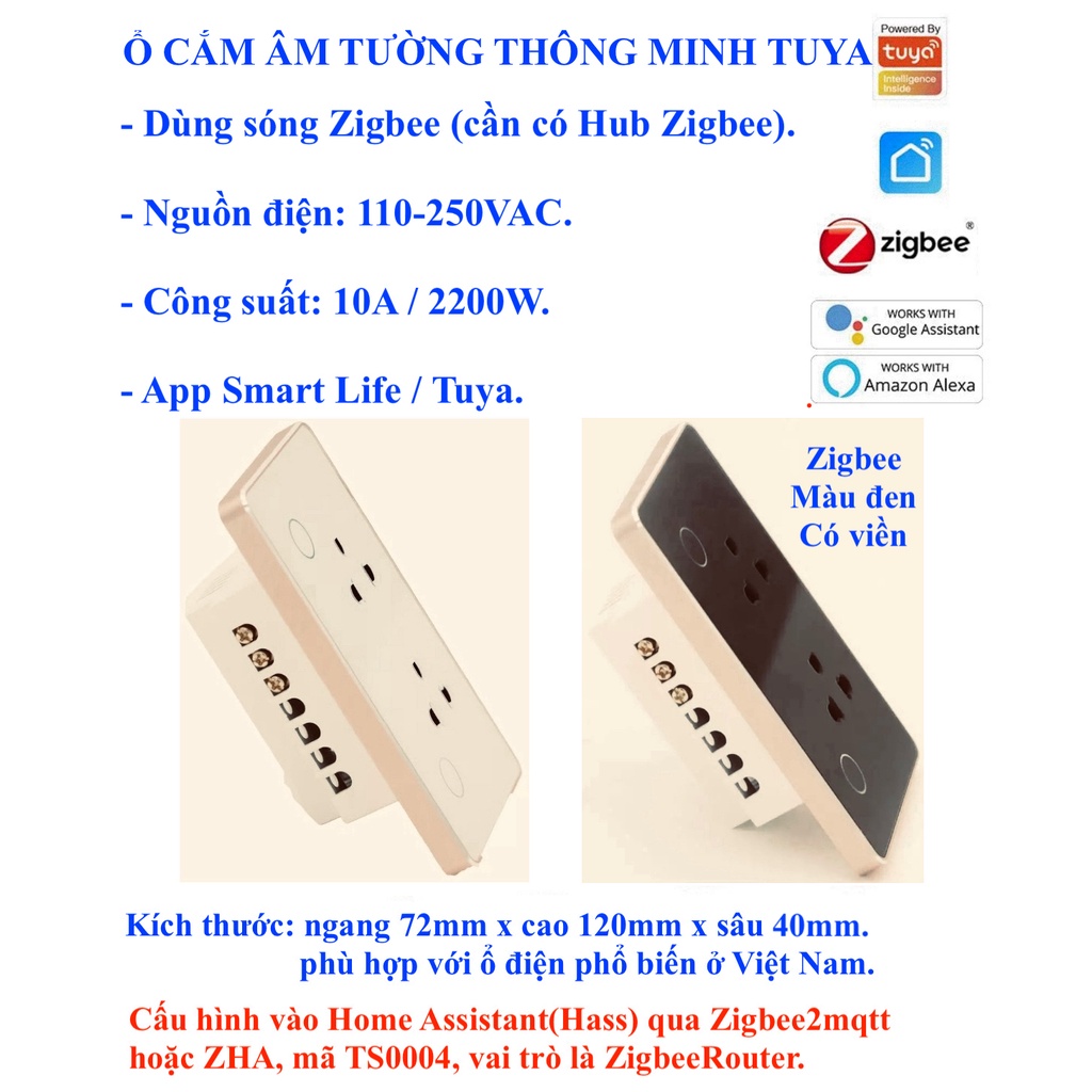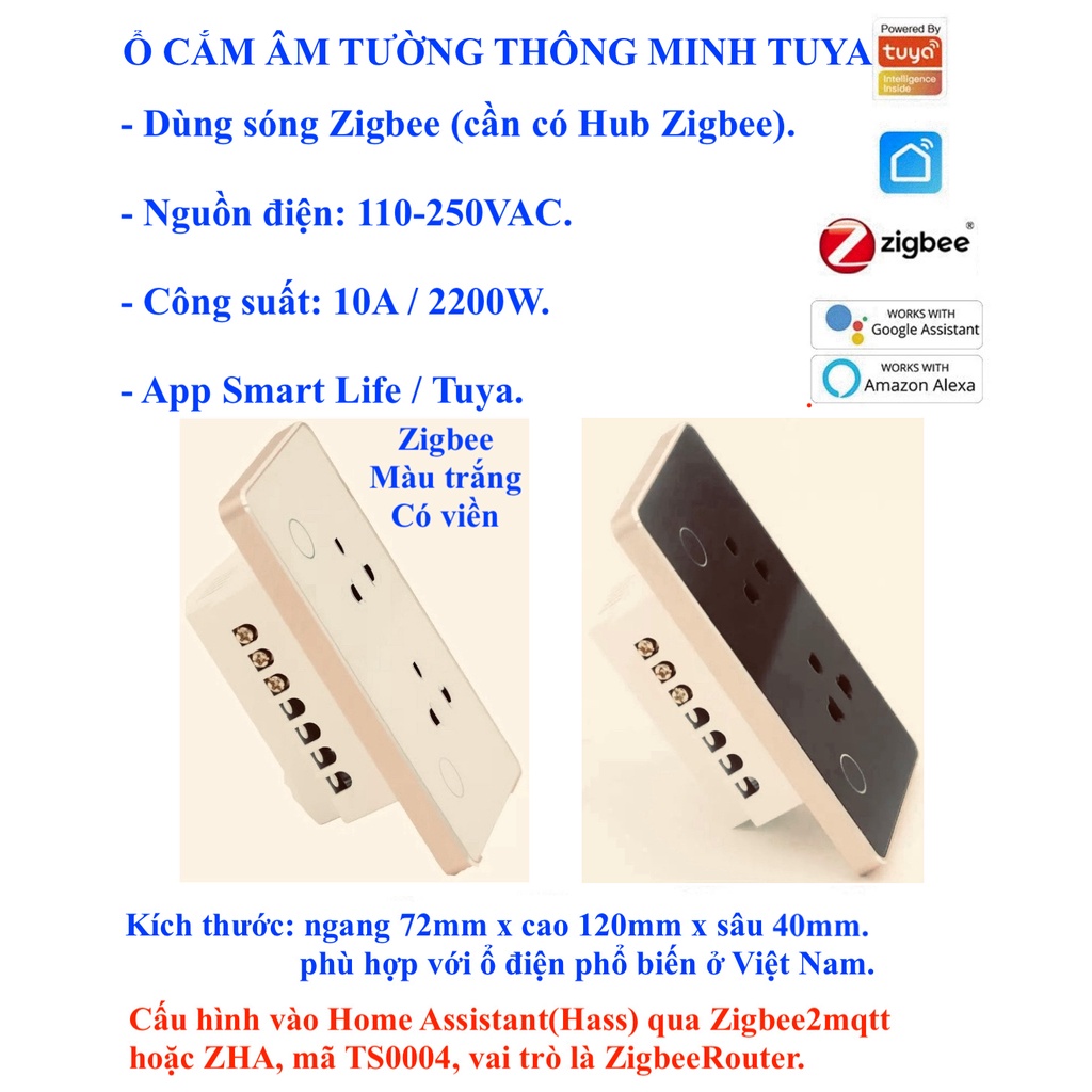 Ổ cắm âm tường thông minh, kết nối Zigbee hoặc Wifi, hệ Tuya.