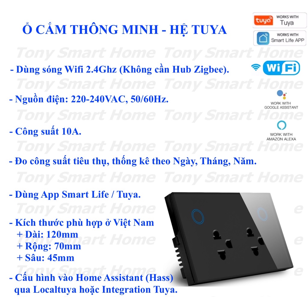Ổ cắm thông minh loại âm tường.Hệ sinh thái TUYA / SMART LIFE.