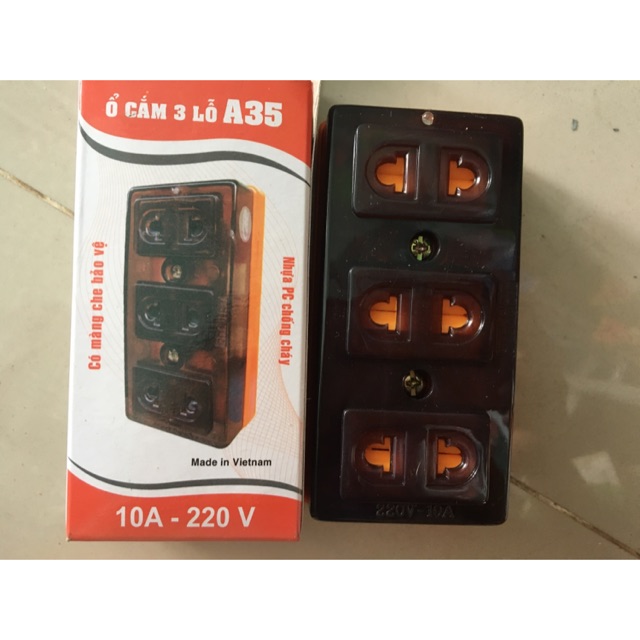 Ổ cắm bắt vít 3 lỗ có màn che xịnChất liệu: nhựa pc chống vỡ