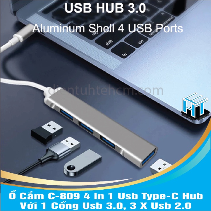 Máy tính & Laptop > Phụ Kiện Máy Tính > Bộ chia cổng USB & Đọc thẻ nhớ || Ổ Cắm C-809 4 in 1 Usb Type-C Hub Với 1 Cổng Usb 3.0, 3 X Usb 2.0Còn hàng