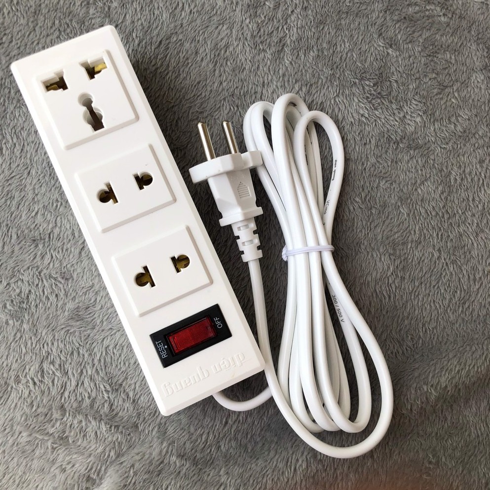 Ổ Cắm Cao Cấp Điện Quang ĐQ 002A - 02 ( 3 lỗ ), chịu nhiệt, chống cháy, màu trắng, nhỏ gọn có công tắc, dây 2m, 5m.