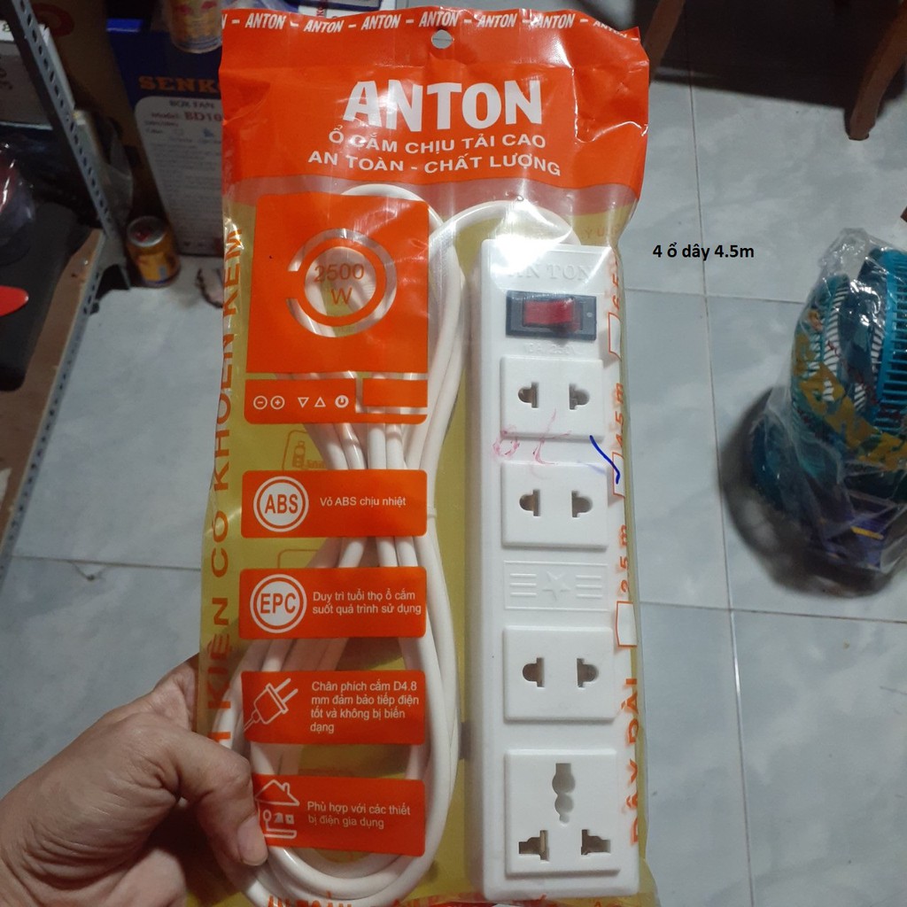 2) Ổ 3 LỖ 1 CÔNG TẮC DÂY 4,5 MÉT ; Ổ 4 LỖ ( CÓ 1 LỖ CHIA 3 ) 1 CÔNG TẮC, Ổ QUAY 4 LỖ DÂY 5 MÉT, Ổ