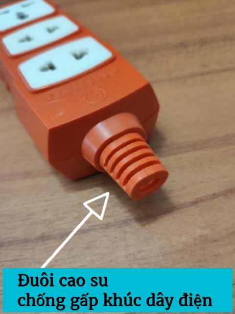 - Có nút chịu lực bằng nhựa ở đầu nối dây điện với ổ giúp ổ thêm chắc chắn và tránh đức bị gập dây điện.