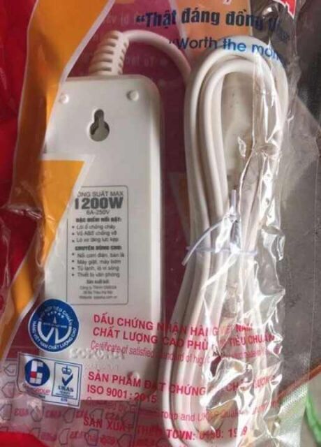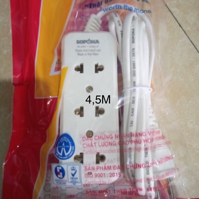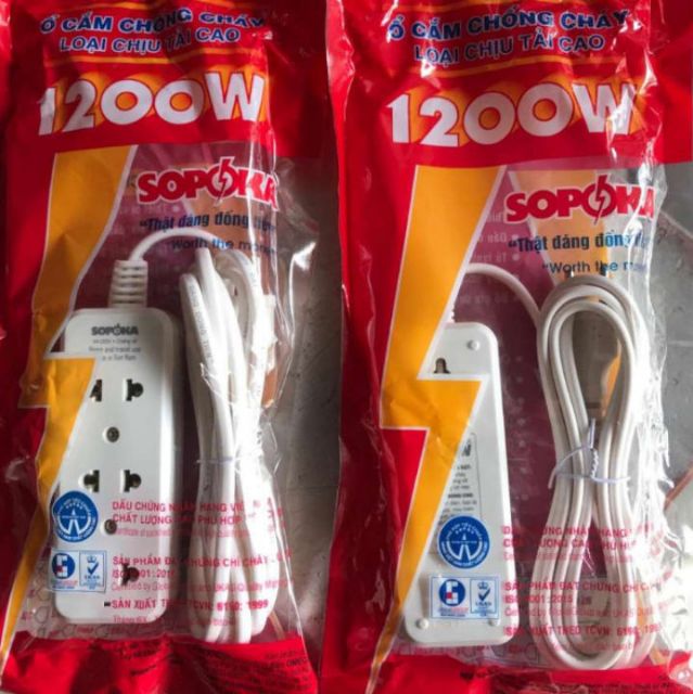 Thiết Bị Điện Gia Dụng > Mạch điện & Phụ tùng > Ổ cắm điện & Dây nối || Ổ cắm chống cháy Sopoka loại chịu tải cao 1200W/ Ổ cắm 3L5 Sopoka dài 4,5mCòn hàng
