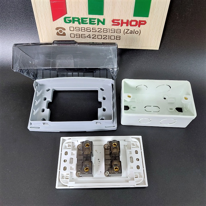 Combo bộ ổ cắm có nắp che mưa chống nước bao gồm: