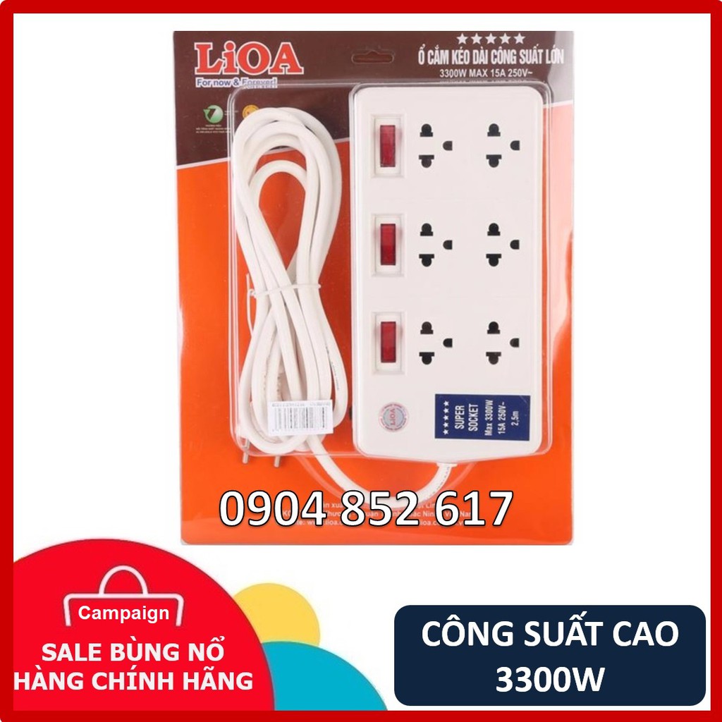 Giới thiệu Ổ cắm công suất cao 3300W - LIOA, 6 ổ cắm, 3 công tắc