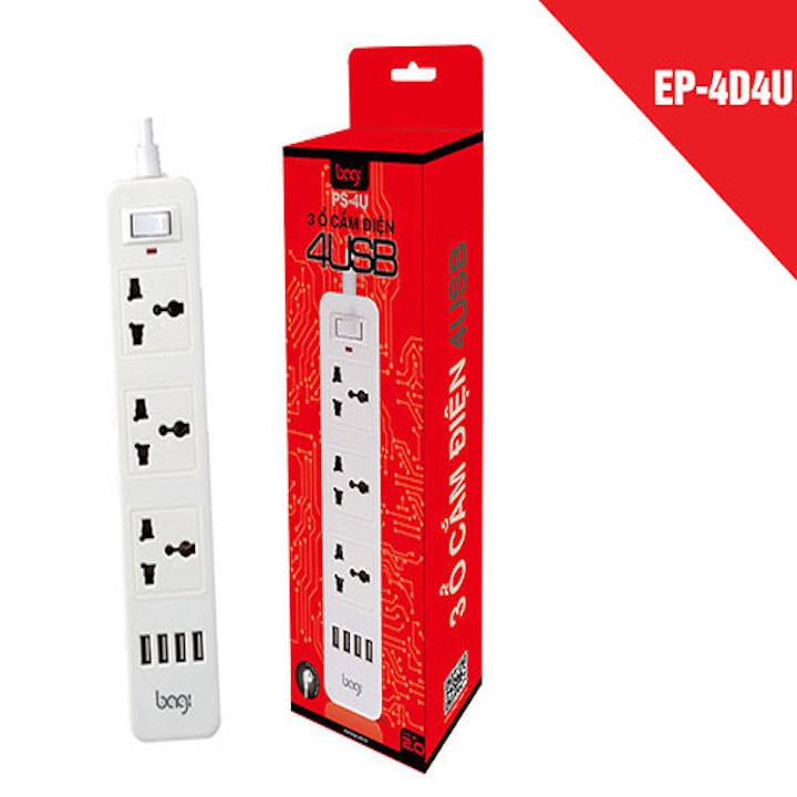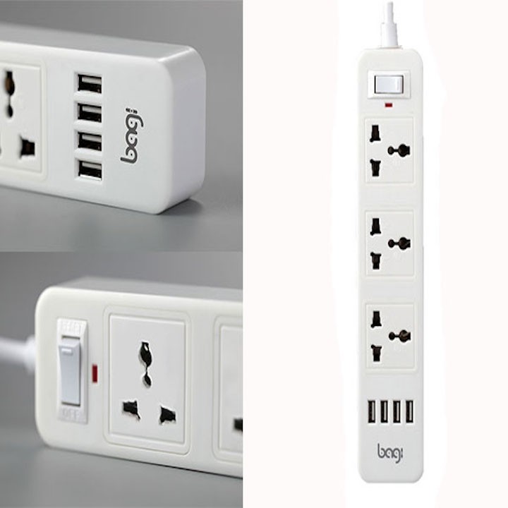 Thiết Bị Điện Gia Dụng > Mạch điện & Phụ tùng > Ổ cắm điện & Dây nối || Ổ cắm đa điện năng 4 cổng USB 3 ổ điện thương hiệu Bagi thông minh tự ngắt khi quá tải, an toàn, tiện lợiCòn hàng