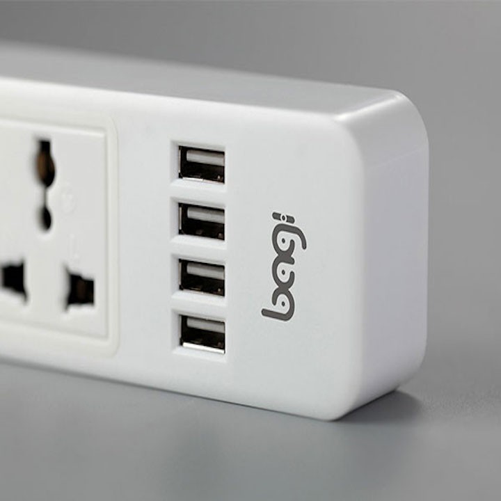 Ổ cắm đa điện năng 4 cổng USB 3 ổ điện thương hiệu Bagi thông minh tự ngắt khi quá tải, an toàn, tiện lợi