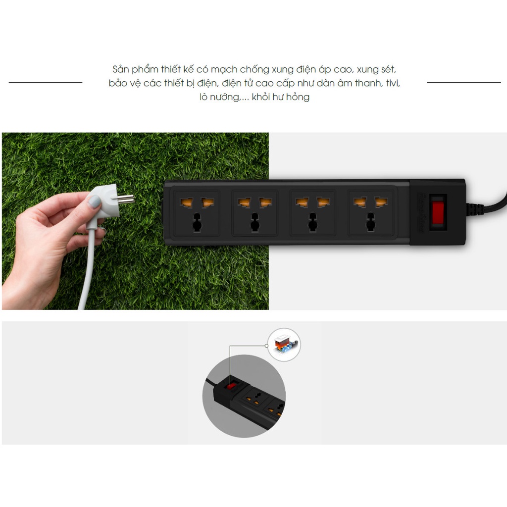 🌈Ổ cắm 4 chân dài 3 mét 5 mét OC02 4C/3M/10A chính hãng Rạng Đông chống xung điện áp cao, xung sét tích hợp rơ le chống quá tải 15A nhựa ABS siêu bền chống lão hóa, chống cháy👉Sản phẩm thiết kế có mạch chống xung điện áp cao, xung sét, bảo vệ các thiết bị điện, điện tử cao cấp như dàn âm thanh, tivi, lò nướng,... khỏi hư hỏng