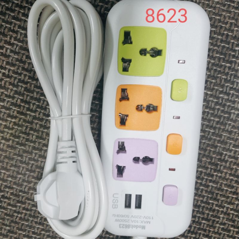 ổ cắm đa năng cao cấp New times với dây cắm dài 3m các ổ cắm làm bằng vật liệu cao cấp giúp chống cháy nổ hiệu quảtổng công suất 2500W đáp ứng nhu cầu sử dụng điện an toàn hơn