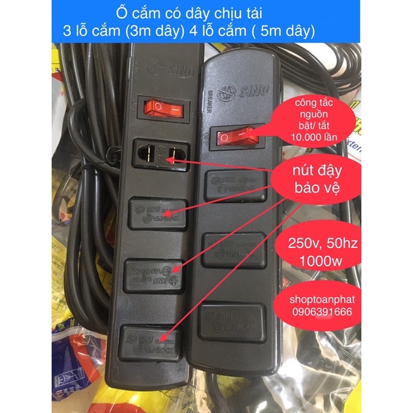 - Có 3 lỗ cắm và 1 công tắc + dây 3m
