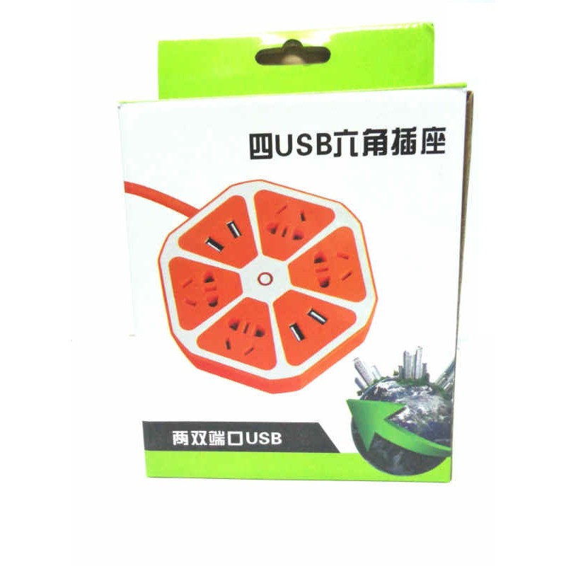 Thiết Bị Điện Gia Dụng > Mạch điện & Phụ tùng > Ổ cắm điện & Dây nối || Ổ cắm đa năng hình lục giác có cổng USB Ổ cắm thông minh hình trái cam 3 chân Tích hợp cắm sạc điện thoại USBCòn hàng