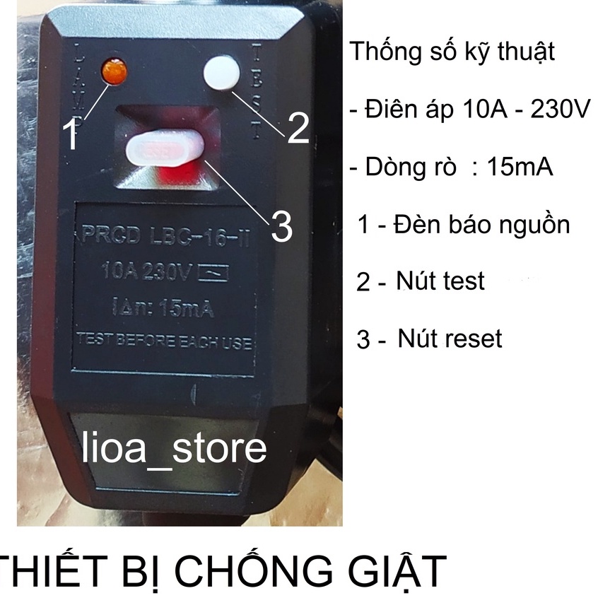 - có thiết bị chống rò 15mA