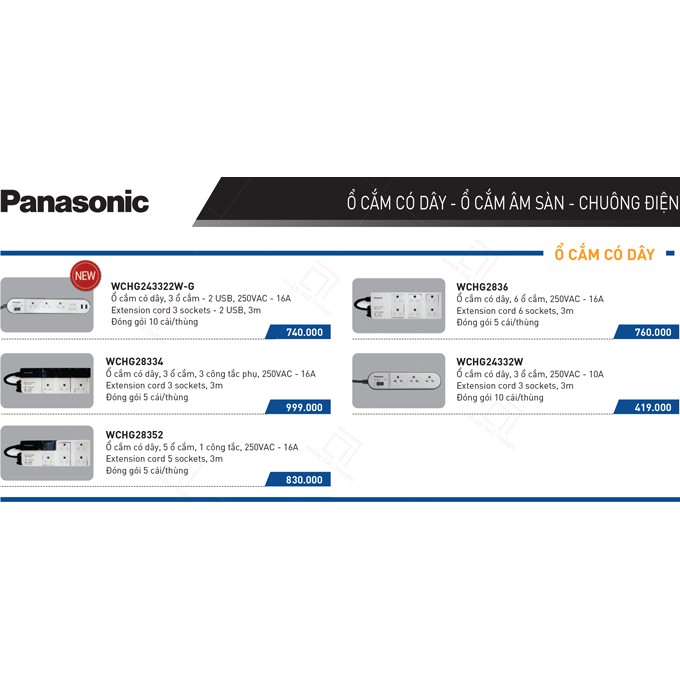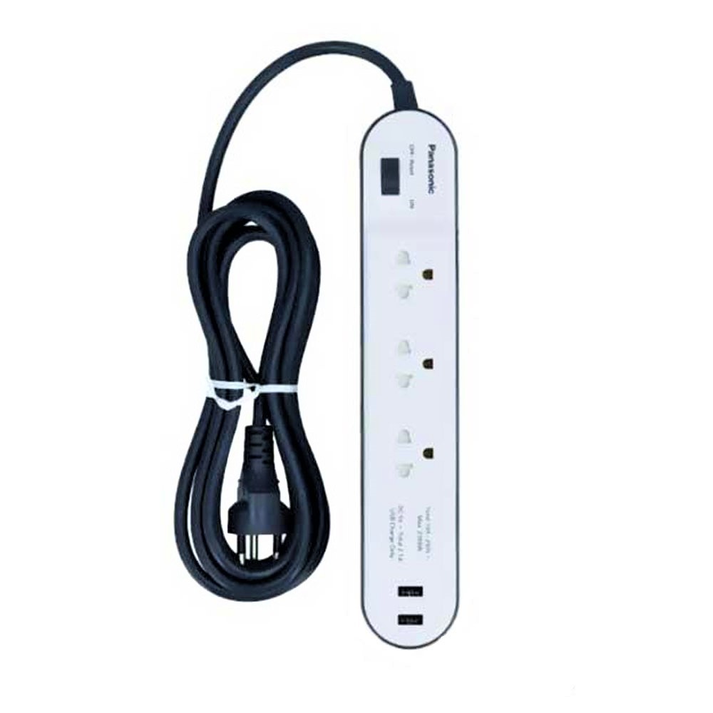 Giới thiệu Ổ cắm dây Panasonic dài 3M 3 Ổ CẮM đa năng + 2 CỔNG USB WCHG243322WG TẶNG KÈM PHÍCH CHIA