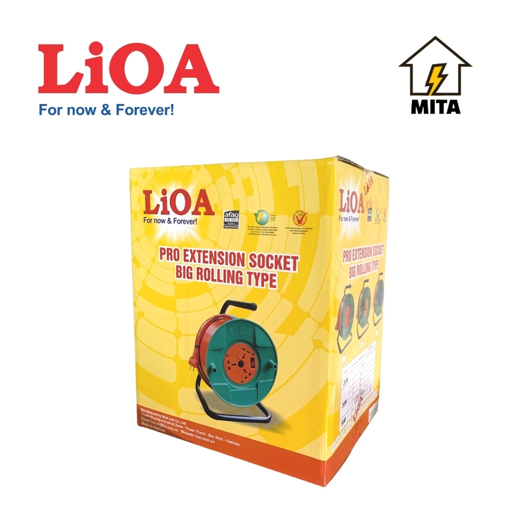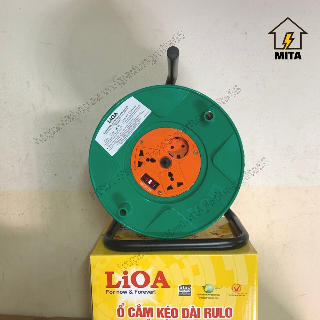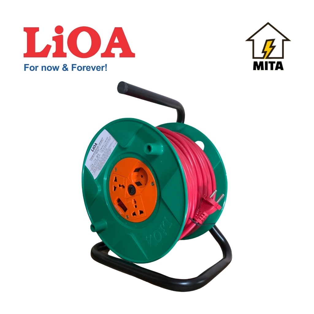 Giới thiệu Ổ cắm điện LiOA, ổ điện kéo dài quay tay dây dài 50m kiểu RULO loại phổ thông LiOA QT50-2-15A - MITA