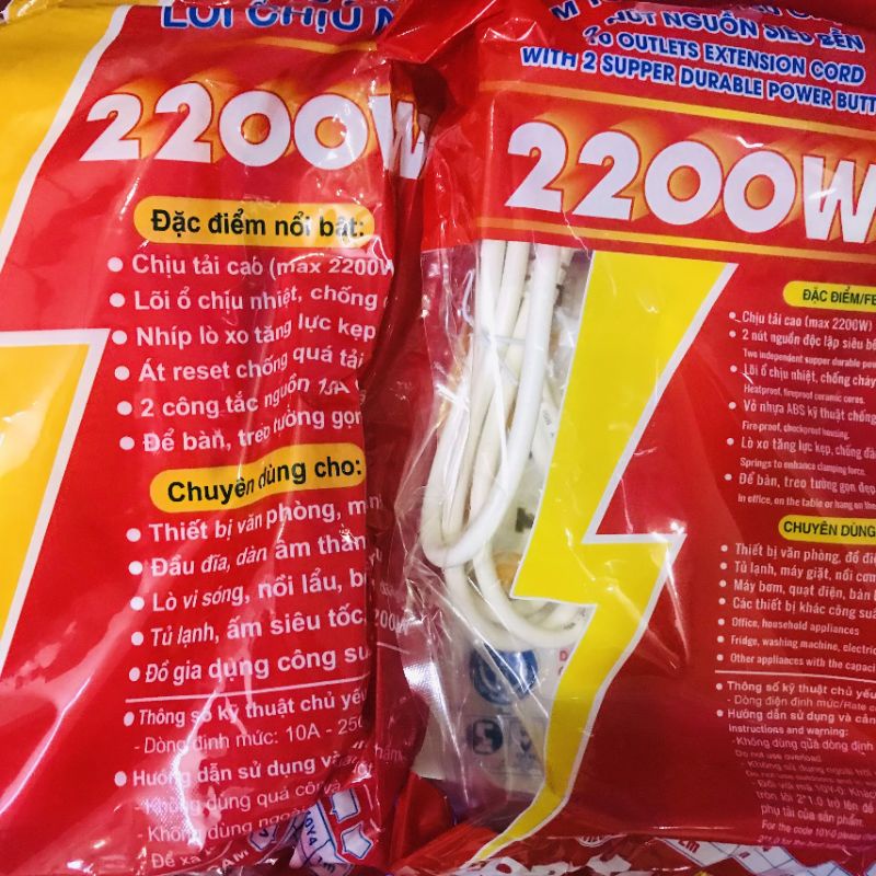 Thiết Bị Điện Gia Dụng > Mạch điện & Phụ tùng > Ổ cắm điện & Dây nối || Ổ cắm điện 10 cửa lõi sứ chịu nhiệt 2 nút nguồn role reset chống quá tải liền dây 2200W SOPOKA dây 2m, 4m, 6mCòn hàng