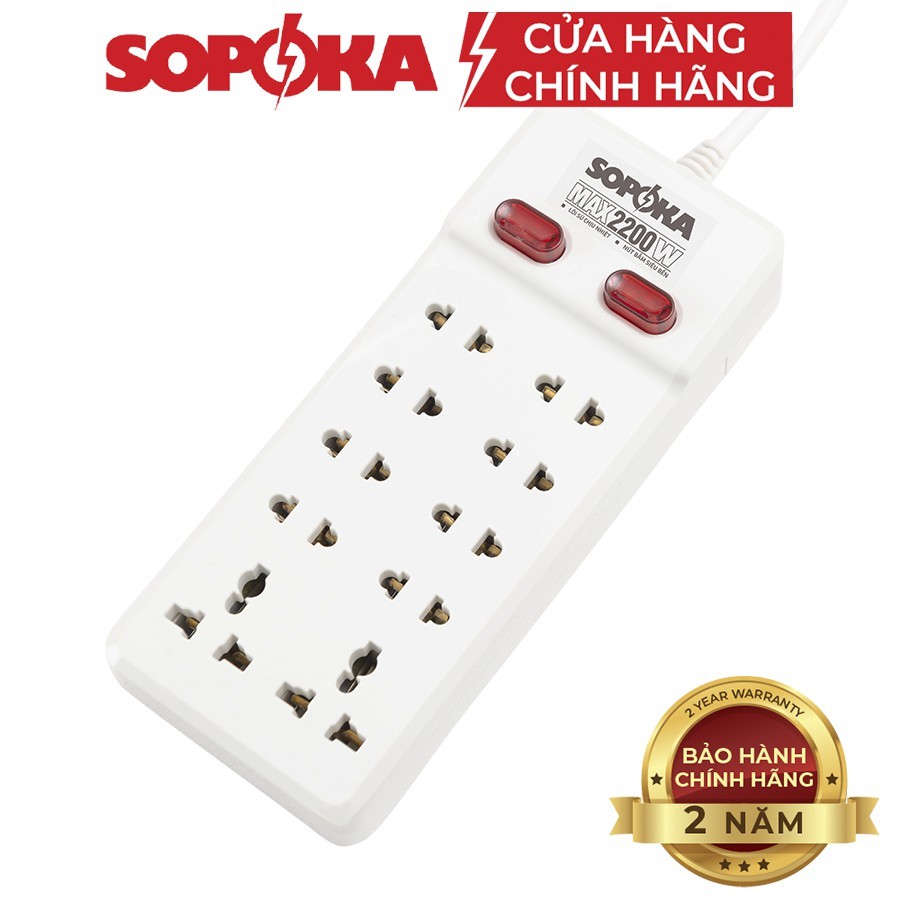 Ổ cắm điện 10 cửa SOPOKA 10Y chịu nhiệt, chống va đập tốt:-Công suất: 2200W