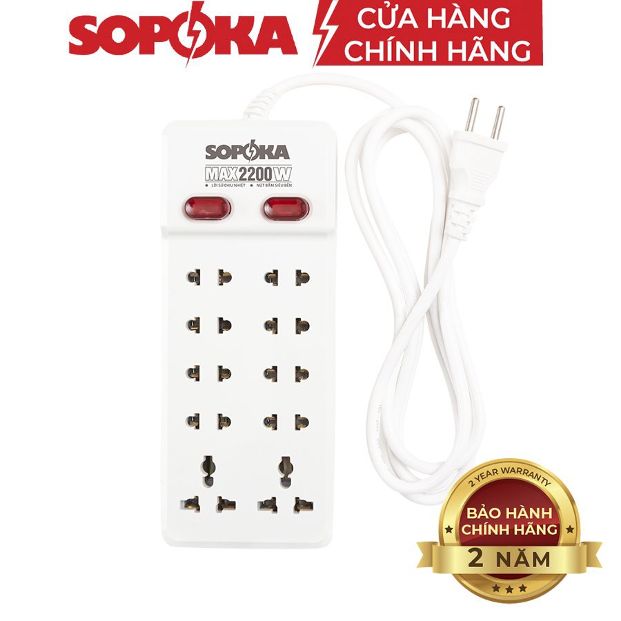 Ổ cắm điện 10 lỗ cắm 2 công tắc SOPOKA 10Y chịu nhiệt, chống va đập tốt dây dài 2m 4m Chính Hãng