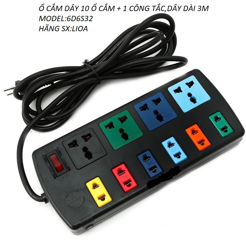 Ổ CẮM ĐIỆN 10 LỔ CẮM LIOA,Ổ CẮM DÂY ĐA NĂNG 4D6S32