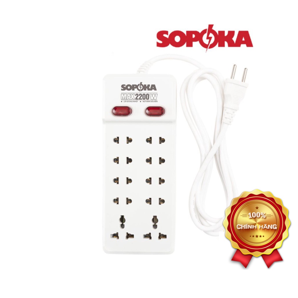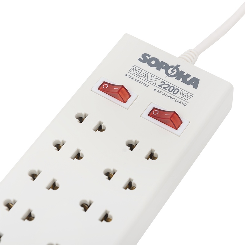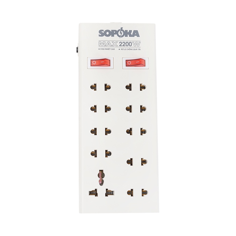 Ổ cắm điện 10 cửa SOPOKA 10Y chịu nhiệt, chống va đập tốt-Công suất: 2200W