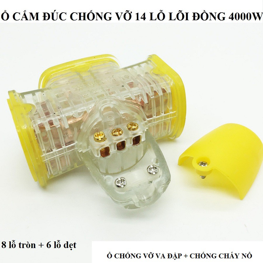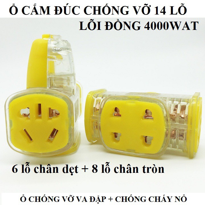 Ổ cắm điện 14 lỗ - ổ cắm đúc chống vỡ chống cháy nổ 8 lỗ cắm chân tròn và 6 lỗ chân dẹt 4000w