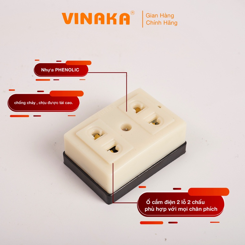 Ổ cắm điện 2 lỗ VINAKA có đèn báo đế nhựa chống cháy A2THÔNG TIN THƯƠNG HIỆU