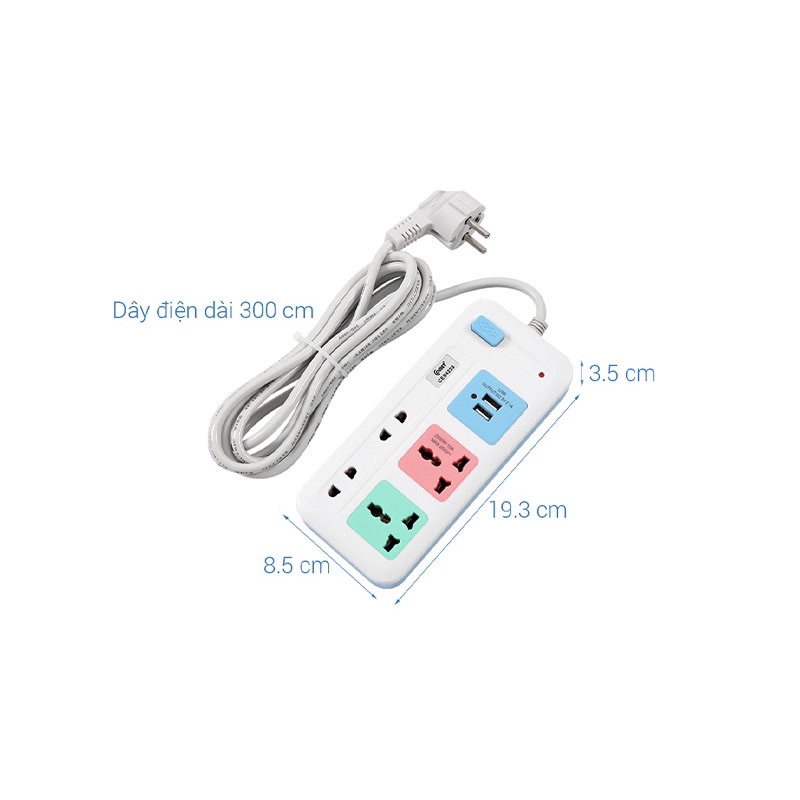 Ổ cắm điện 2 USB 4 lỗ 3m COMET CES4223