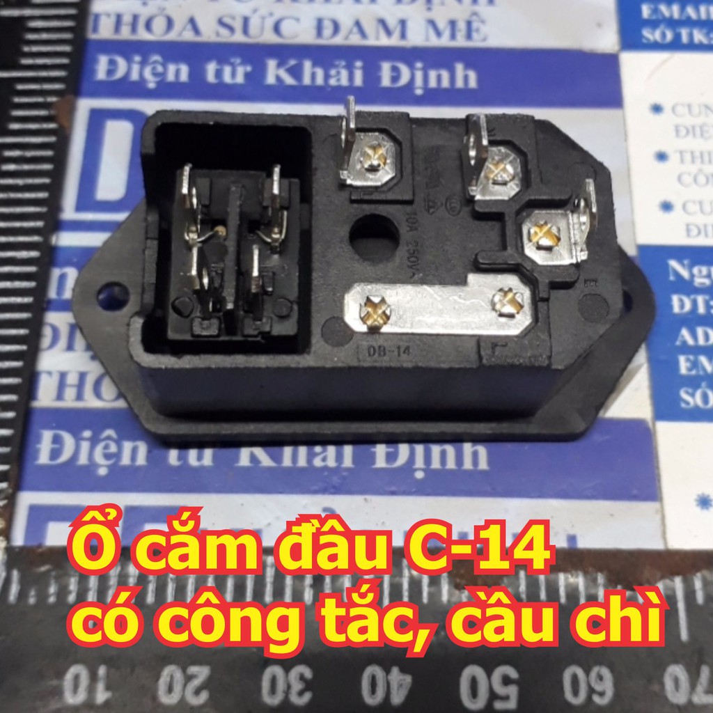 Ổ cắm điện 3 chấu đầu cái C-14, ổ nguồn AC 3 chân 220VAC có công tắc, ổ cắm cầu chì kde7040