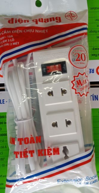 Thiết Bị Điện Gia Dụng > Mạch điện & Phụ tùng > Ổ cắm điện & Dây nối || Ổ cắm điện 3 lổ 2500w chịu nhiệt Điện Quang (2+5m)Còn hàng