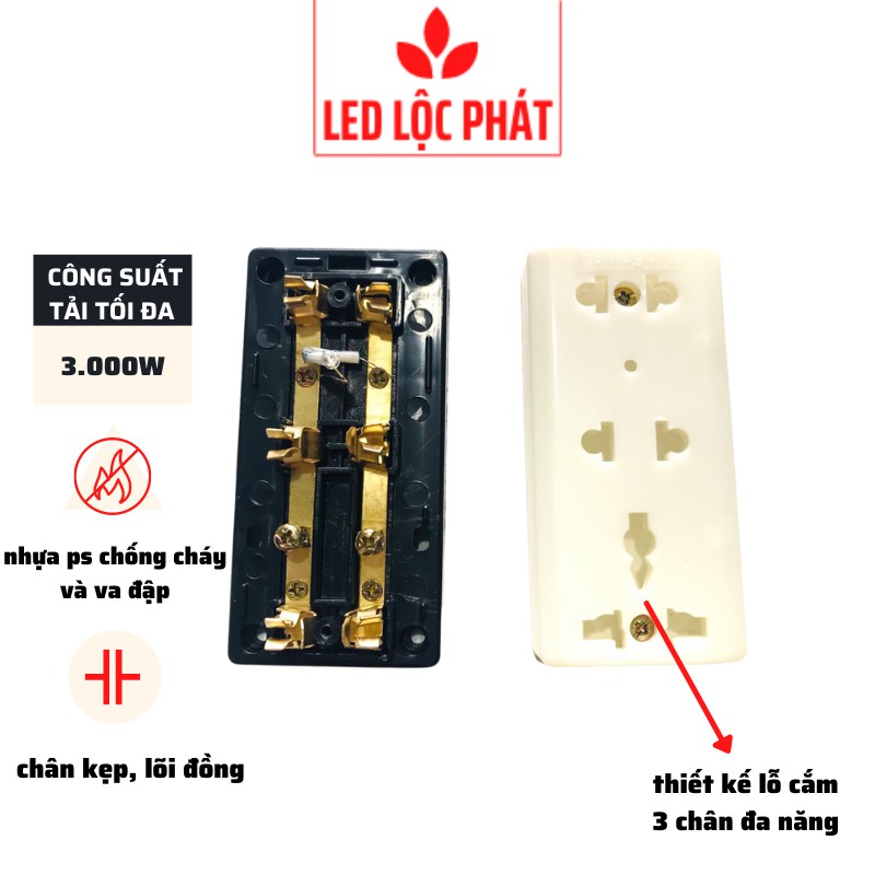 - Ổ điện 3 lỗ 100% nhựa ABS chịu nhiệt, chống rò rĩ điện, hạn chế tác hại phóng điện