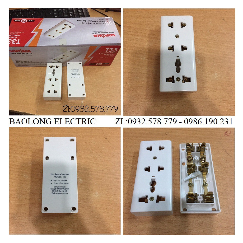 Ổ CẮM ĐIỆN 3 LỔ CẮM GẮN NỔI CHỐNG GIẢN CHỐNG VỠ SOPOKA T33