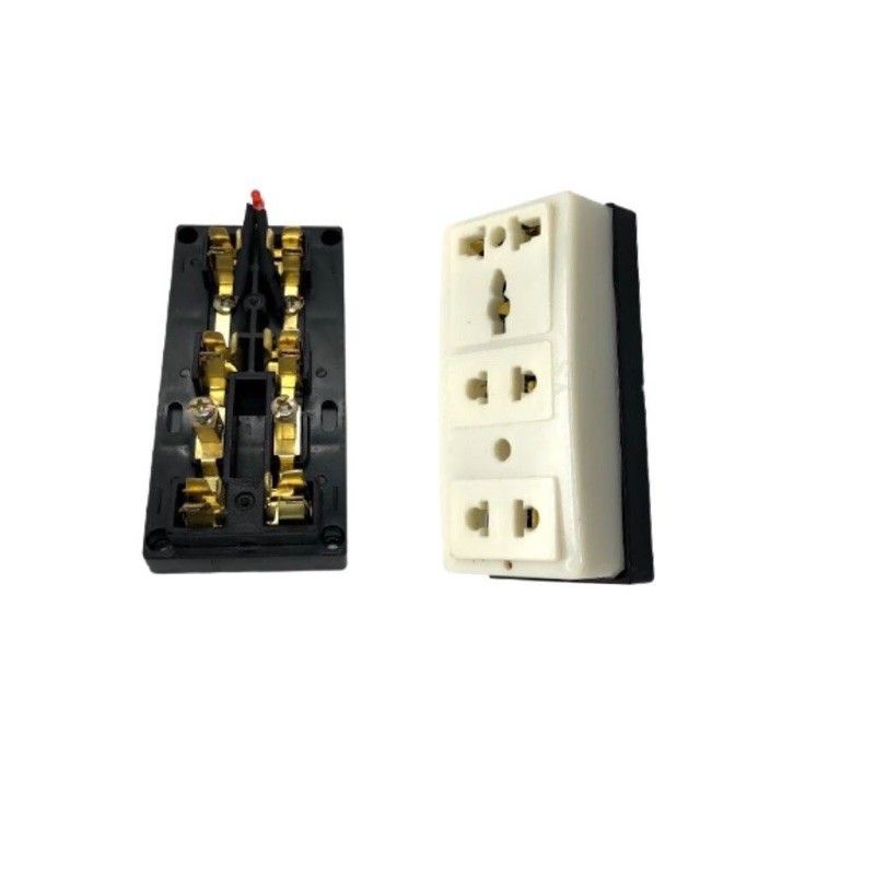 Ổ cắm điện 3 ngả, có lỗ cắm đa năng đế đen Nival, Vinaka, Hinoki 10A-250V, mặt ổ cắm chống cháy, chống va đạp