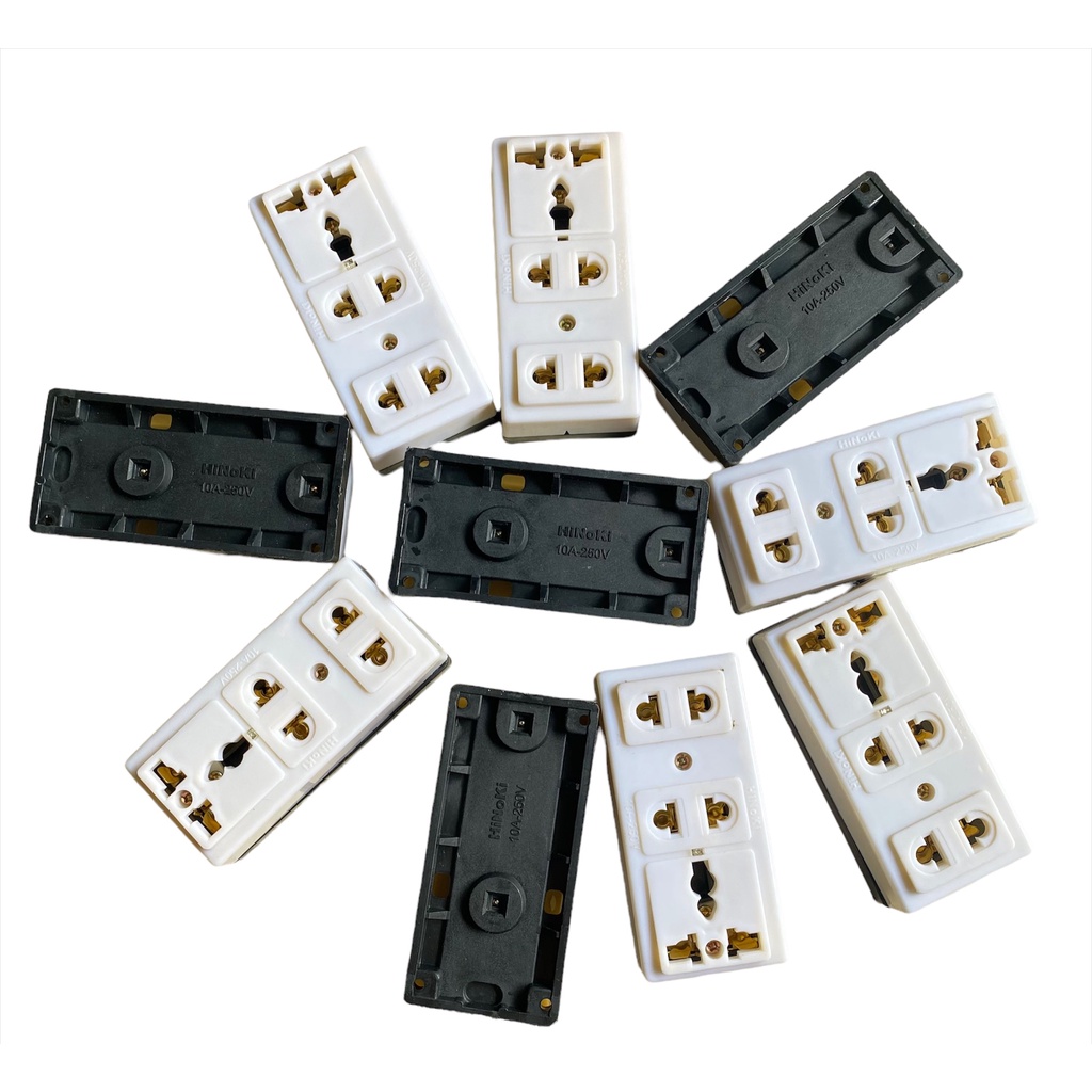 Thiết Bị Điện Gia Dụng > Mạch điện & Phụ tùng > Ổ cắm điện & Dây nối || Ổ cắm điện 3 ngả, có lỗ cắm đa năng đế đen Hinoki 10A-250V, mặt ổ cắm chống cháy, chống va đạpCòn hàng