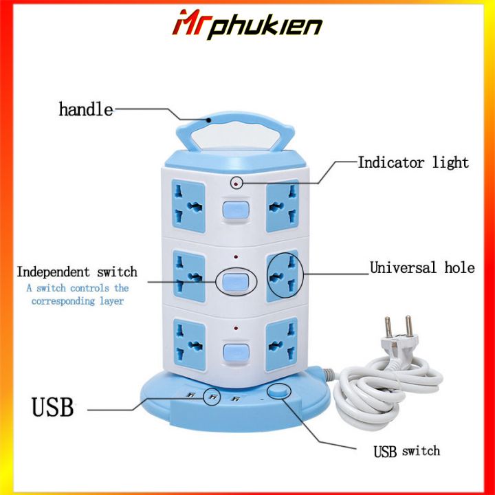 Giới thiệu Ổ CẮM ĐIỆN 3 TẦNG CÔNG TẮC RIÊNG MỖI TẦNG 2500W 11 Ổ CẮM ĐIỆN ĐA NĂNG,2 CỔNG SẠC USB - MrPhuKien